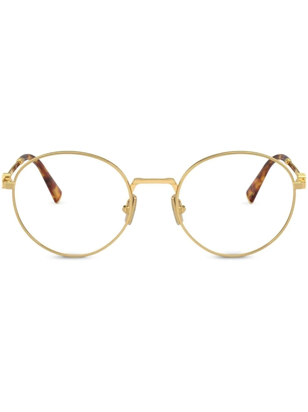metallic round-frame glasses Highlights - Gold-tone - Metal - Metallic effect - Round frame - Clear lenses - Logo plaque at the arm - Tortoiseshell-effect detailing - Straight arms - Curved tips - All glasses from farfetch are sold as non-prescription frames. - These glasses come with a protective case. Composition Metal 100% SIZE & FIT Measurement Arm Length 5.51 in(14 cm) Bridge Width 0.74 in(1.9 cm) Lens Diameter 2 in(5.1 cm)