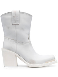 mid-calf leather cowboy boots Crafted from supple calf leather to a wintery white hue, these boots recall the clean, bold lines of cowboy styles. The ankle-length pair is detailed with a contrasting toe cap, while the logo-embossed pull tabs at the sides offer a branded finish. Composition Leather 100% SIZE & FIT Measurement CIRCUMFERENCE 14.17 in(36 cm) HEEL 3.34 in(8.5 cm) HEIGHT 5.9 in(15 cm) Sole height 0.51 in(1.3 cm)