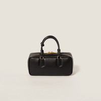 This Arcadie leather bag expresses a concept of fashion as a means for translating a reaction to current reality into a particular shape. The light padding gives a voluminous appearance and cosmopolitan style to the accessory. The lettering logo crosses the boundaries between function and decoration and helps define the distinctive and iconic aesthetic of the top-handle bag. - Product code: 5BB148_ACR3_F0002_V_OON - Light padding - Leather handles - Detachable, adjustable leather shoulder strap, length: 105 cm - Gold-tone hardware - Varnished metal lettering logo on the front - Zipper closure - Cotton satin lining with zipper pocket - With small purse feet - Imported Height 12cm Width 27cm Length 9cm Materials Main material: Calfskin