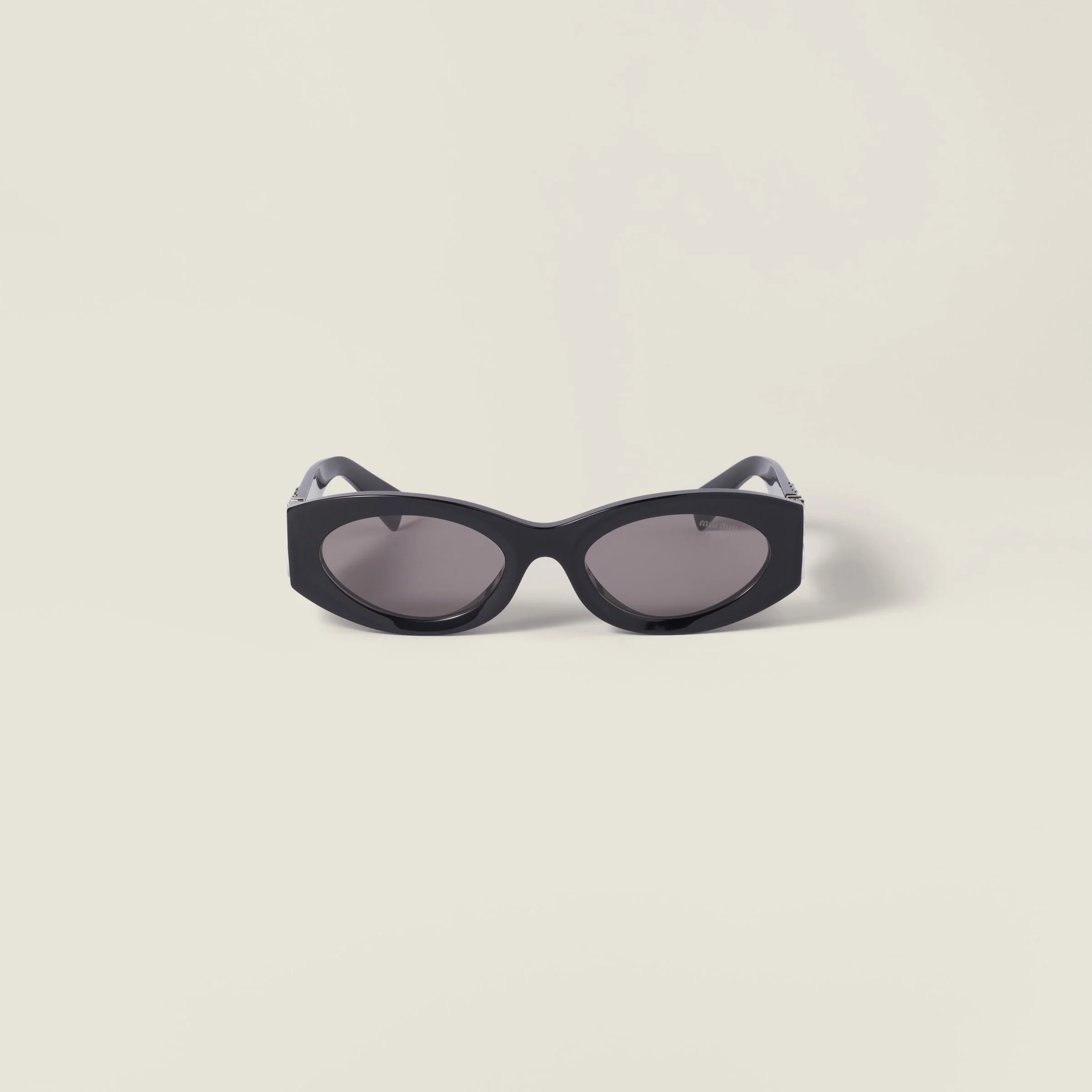 Acetate sunglasses with an oval design that embodies bold, sophisticated femininity. The low-profile front is enhanced by the vertical Miu Miu logo integrated into the hinge of the chunky temples. - Product code: SMU11W_E16K_FE80Q_C_054 - Acetate frame front - Color: Black - Frame not compatible with graduated lenses - 100% UVA / UVB protection - Full Fitting - Lens-nose-temple measurements: 54-21-135 mm - Article comes with dedicated packaging - Other colors available - Imported Materials Main material: Acetate