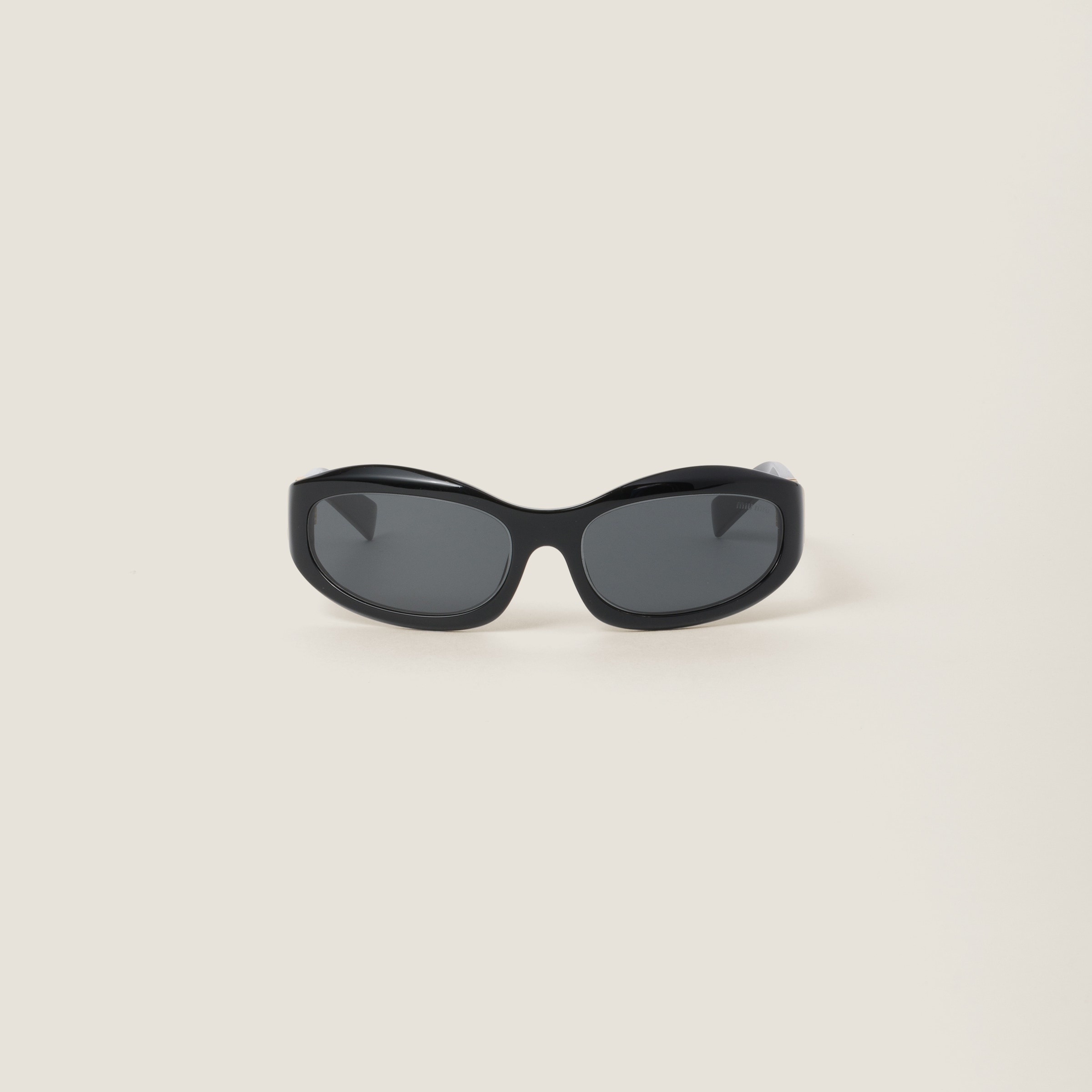 Miu Glimpse sunglasses are reinterpreted in a bold new contemporary version. The acetate frame is characterized by its curved silhouette and bold rims, while the iconic vertical Miu Miu logo is integrated in the temple hinges. - Product code: SMU14Z_E16K_FE08Z_C_059 - Recycled acetate frame front - Color: Black - Frame not compatible with graduated lenses - 100% UVA / UVB protection - Standard Fit - Lens-nose-temple measurement: 59-18-140 mm - Article comes with dedicated packaging - Other colors available - Imported Materials Main material: Acetate