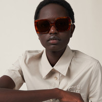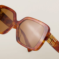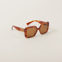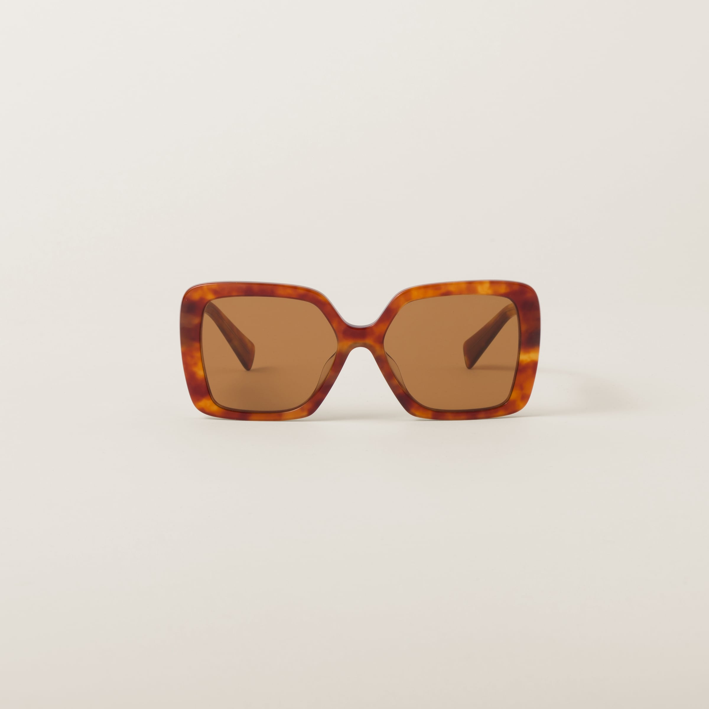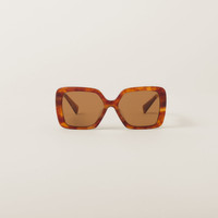 Acetate sunglasses characterized by their oversized frame. The large front with bold rims expresses contemporary femininity. The refined vertical Miu Miu logo is integrated in the hinge of the straight temples. - Product code: SMU10Y_E4BW_F02Z1_C_056 - Acetate frame front in Light Tortoiseshell - Frame compatible with graduated lenses - 100% UVA / UVB protection - Standard fit - Lens-nose-temple measurement: 56-17-135 mm - Article comes with dedicated packaging - Other available colors - Imported