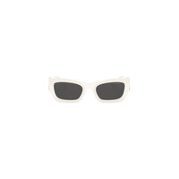 These rectangular acetate sunglasses with a bold design interpret rebellious femininity. The distinctive low profile frame front is accented with the new Miu Miu vertical logo integrated in the hinge of the thick temples. - Product code: SMU09W_E142_F05S0_C_053 - Acetate frame front in chalk white - Frame not compatible with graduated lenses - 100% UVA / UVB protection - Full Fit - Lens-nose-temple measurement: 53-22-135 mm - Article comes with dedicated packaging - Other available colors - Imported