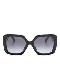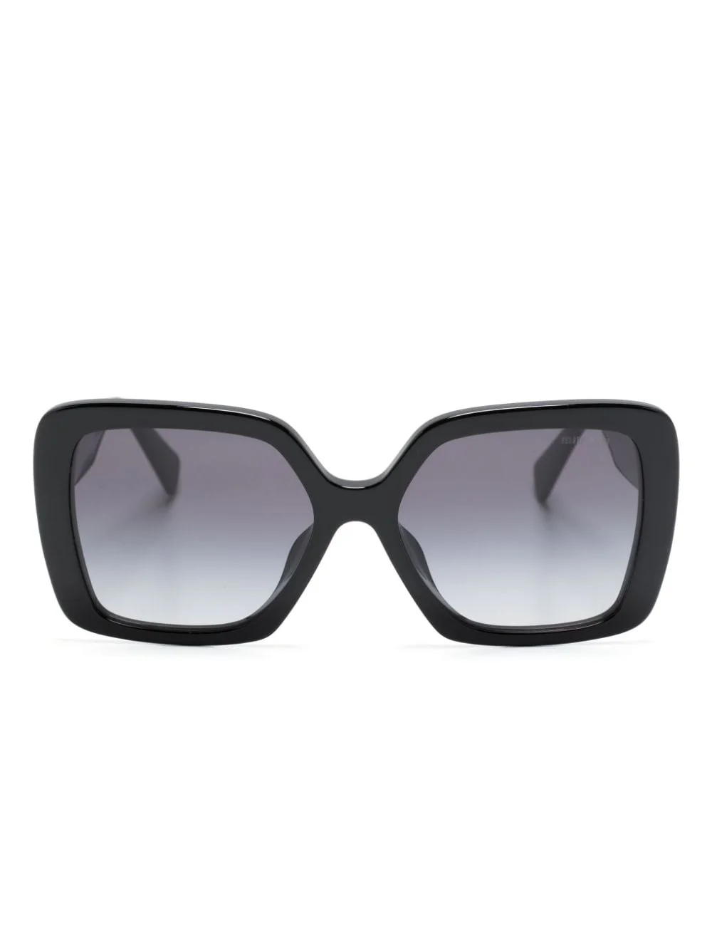 logo-plaque oversized-frame sunglasses Miu Miu's sunglasses reflect the Italian brand's bold style. Designed with oversized square frames, they're fitted with gradient lenses in a blue-purple colourway. A gold-tone logo plaque decorates the arms for a branded touch. Highlights - Black - Acetate - Gradient lenses - Oversize frame - Gold-tone logo plaque - Straight arms - Curved tips - These glasses come with a protective case. Composition Acetate 100% SIZE & FIT Measurement Arm Length 5.31 in(13.5 cm) Bridge Width 0.74 in(1.9 cm) Lens Diameter 2 in(5.1 cm)