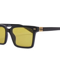 Add some Miu Miu flair to your summer style with the 13ZS Sunglasses. Featuring statement green lenses contrasting with a black acetate frame, they’re an eye-catching way to shade from the sun. At the temples, a gold-toned logo nods to the brand’s recognisable elegance. - Square Shape - Acetate Frame - Polyamide Lenses