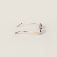 Miu Miu sunglasses with a sophisticated allure. The ultra-light metal frame features free-form rectangular lenses enriched by a playful color palette. The vertical Miu Miu logo adorns the ultra-thin temples - Product code: SMUB50_E5AK_FE20I_C_052 - Metal frame front - gold color - Frame not compatible with graduated lenses - 100% UVA/UVB protection - Adjustable nose pads adaptable to any fit - Lens-nose-temple measurement: 52-20-140 mm - Article comes with dedicated packaging - Imported Materials Main material: Metal