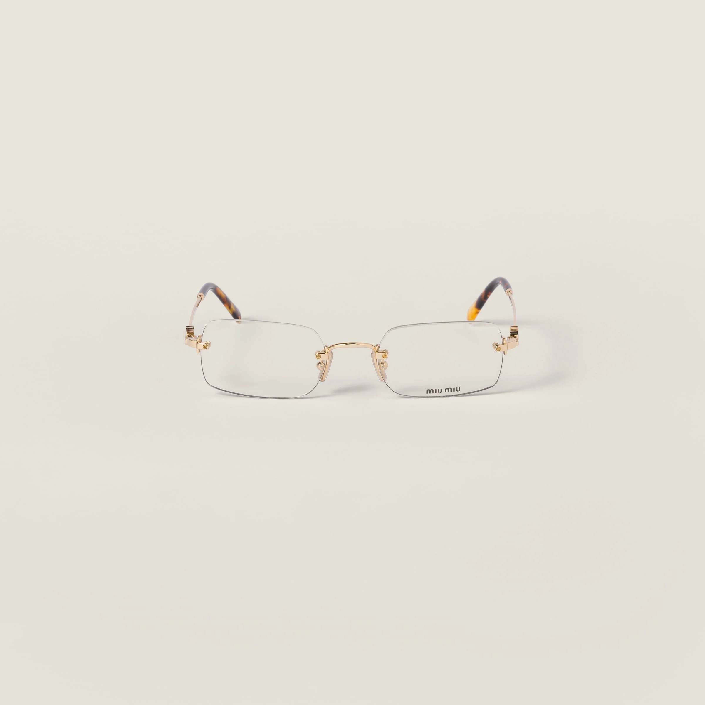 Miu Miu sunglasses with a sophisticated allure. The ultra-light metal frame features free-form rectangular lenses enriched by a playful color palette. The vertical Miu Miu logo adorns the ultra-thin temples - Product code: SMUB50_S5AK_FE08N_C_052 - Metal frame front - gold color - Frame not compatible with graduated lenses - 100% UVA/UVB protection - Non-prescription Blue Light lenses equipped with a special filter to reduce exposure to blue light from digital devices and sunlight - Adjustable nose pads adaptable to any fit - Lens-nose-temple measurement: 52-20-140 mm - Article comes with dedicated packaging - Imported Materials Main material: Metal