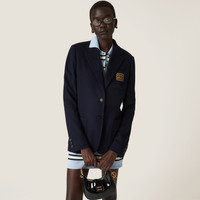 This single-breasted velour jacket embraces and enhances its menswear inspiration. The embroidered logo completes the design with an iconic note. - Product code: MH1769_125Q_F0008_S_231 - Menswear fit - Lined - Front button closure - Buttoned sleeves - Patch pockets - Back vent - Embroidered logo - Imported Height 77cm Materials Main material: 10% Cashmere 90% Virgin Wool