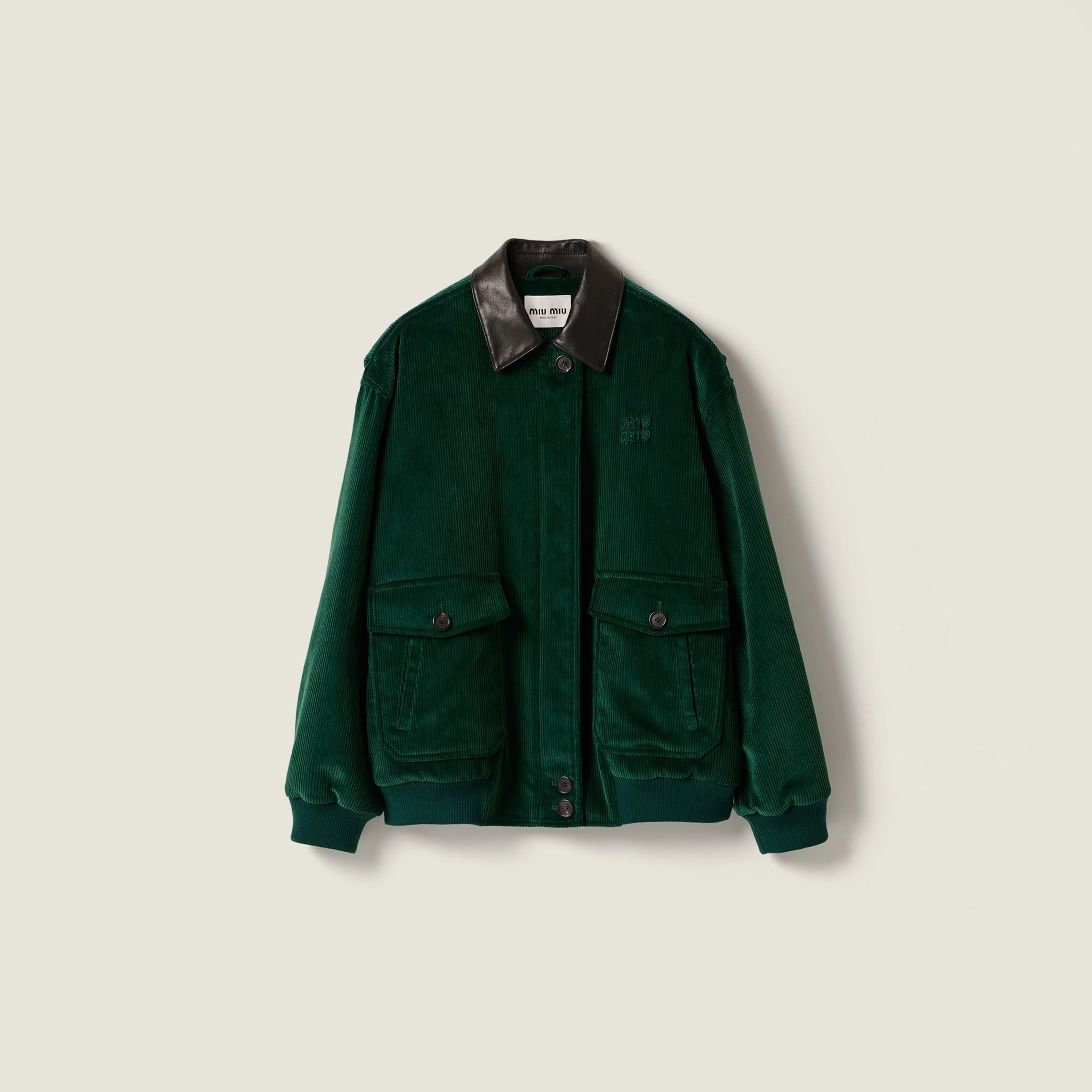 The aviator blouson design is elevated by the unique corduroy texture, giving the silhouette a refined character. The light padding and contrasting leather collar emphasize its bold versatility. - Product code: ML1326_1795_F0L76_S_OOO - Lined garment - Wadding padding - Shearling collar - Knit cuffs - Zip closure - Flap pockets with button - Knit belt - Embroidered logo - Imported - The model is 177 cm tall and wears a size 38 Height 68cm Materials Main material: 100% Cotton