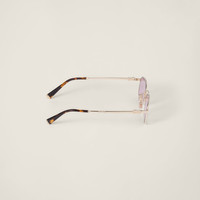 Miu Miu sunglasses reinterpret the classics with a touch of glamour. The metal frame features square lenses highlighted by the thin rims. The vertical Miu Miu logo decorates the ultra-thin temples. - Product code: SMUA53_EZVN_F04I0_C_049 - Metal frame front - Color: Pale Gold - Frame compatible with graduated lenses - 100% UVA / UVB protection - Adjustable nose pads suitable for any fit - Lens-nose-temple measurements: 49-22-140 mm - Article comes with dedicated packaging - Other colors available - Imported Materials Main material: Metal