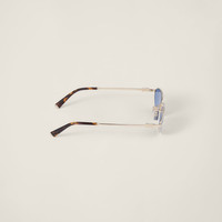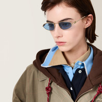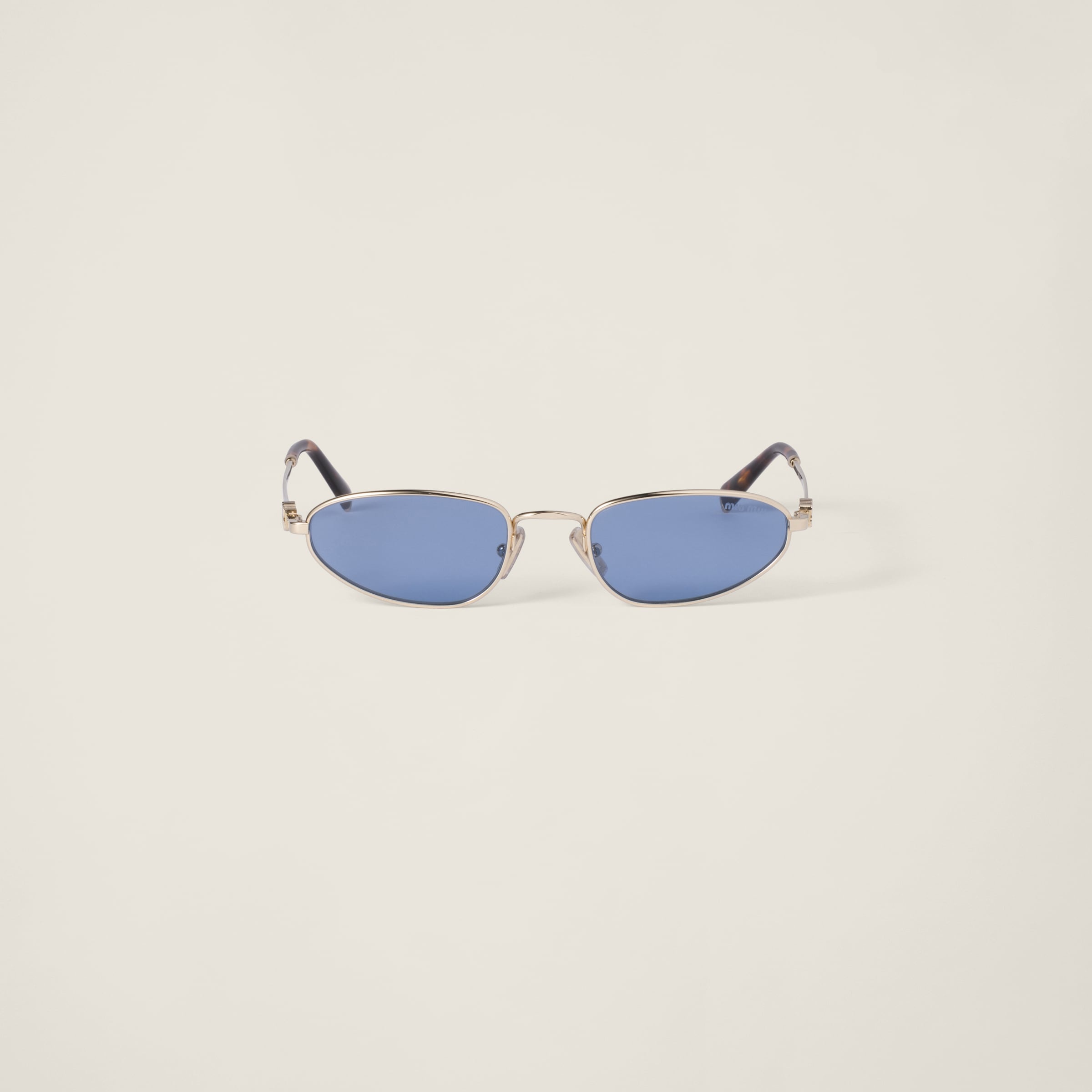 Miu Miu sunglasses reinterpret the classics with a touch of glamour. The metal frame has unconventional oval-shaped lenses with thin rims. The vertical Miu Miu logo decorates the ultra-thin temples. - Product code: SMUA52_EZVN_FE60O_C_052 - Metal frame front - Color: Pale Gold - Frame compatible with graduated lenses - 100% UVA / UVB protection - Adjustable nose pads suitable for any fit - Lens-nose-temple measurements: 52-19-140 mm - Article comes with dedicated packaging - Other colors available - Imported Materials Main material: Metal