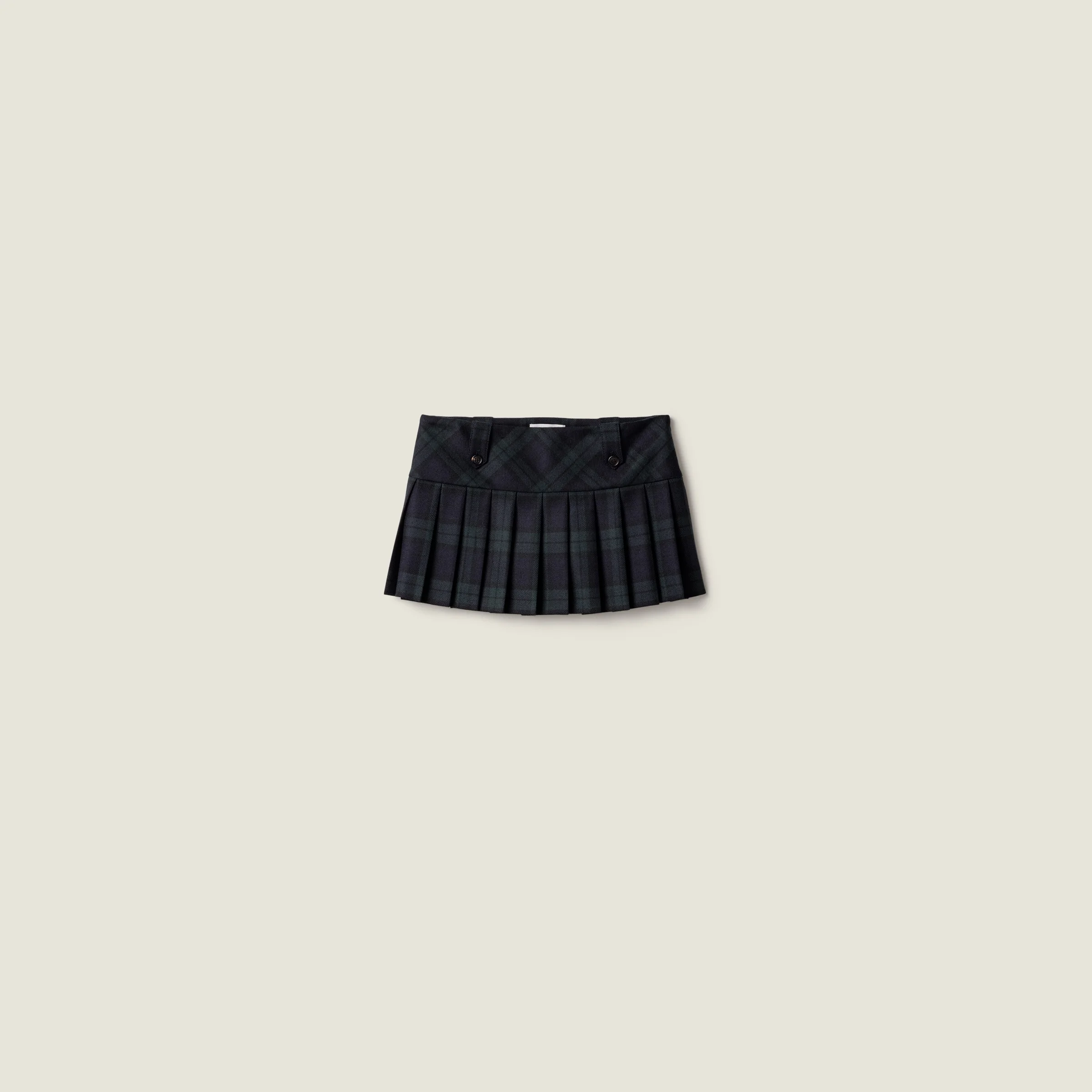 Plaid, a pattern with a vintage mood, interprets Miu Miu's experimentation on the classic wardrobe and defines the identity of this miniskirt characterized by a design and elegant pleated motif inspired by preppy style. - Product code: MG2534_17V7_F0D3Z_S_OOO - Mini silhouette - Side zipper closure with hook - Lettering logo on the back - Imported - The model is 178 cm tall and wears a size 38 Height 30cm Materials Main material: 100% Virgin Wool