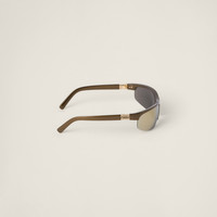 The new sunglasses from the fashion show stand out for their on-trend sporty touch with a playful twist. The curved design of the frame is enriched by eye-catching mirrored lenses available in different shades. The straight temples are decorated with the Miu Miu logo. - Product code: SMUA02_M16Y_F08G1_C_070 - Nylon frame front - Color: Metallic Rust - Frame not compatible with graduated lenses - 100% UVA / UVB protection - Standard fit - Lens-nose-temple measurements: 70-14-120 mm - Article comes with dedicated packaging - Other colors available - Imported