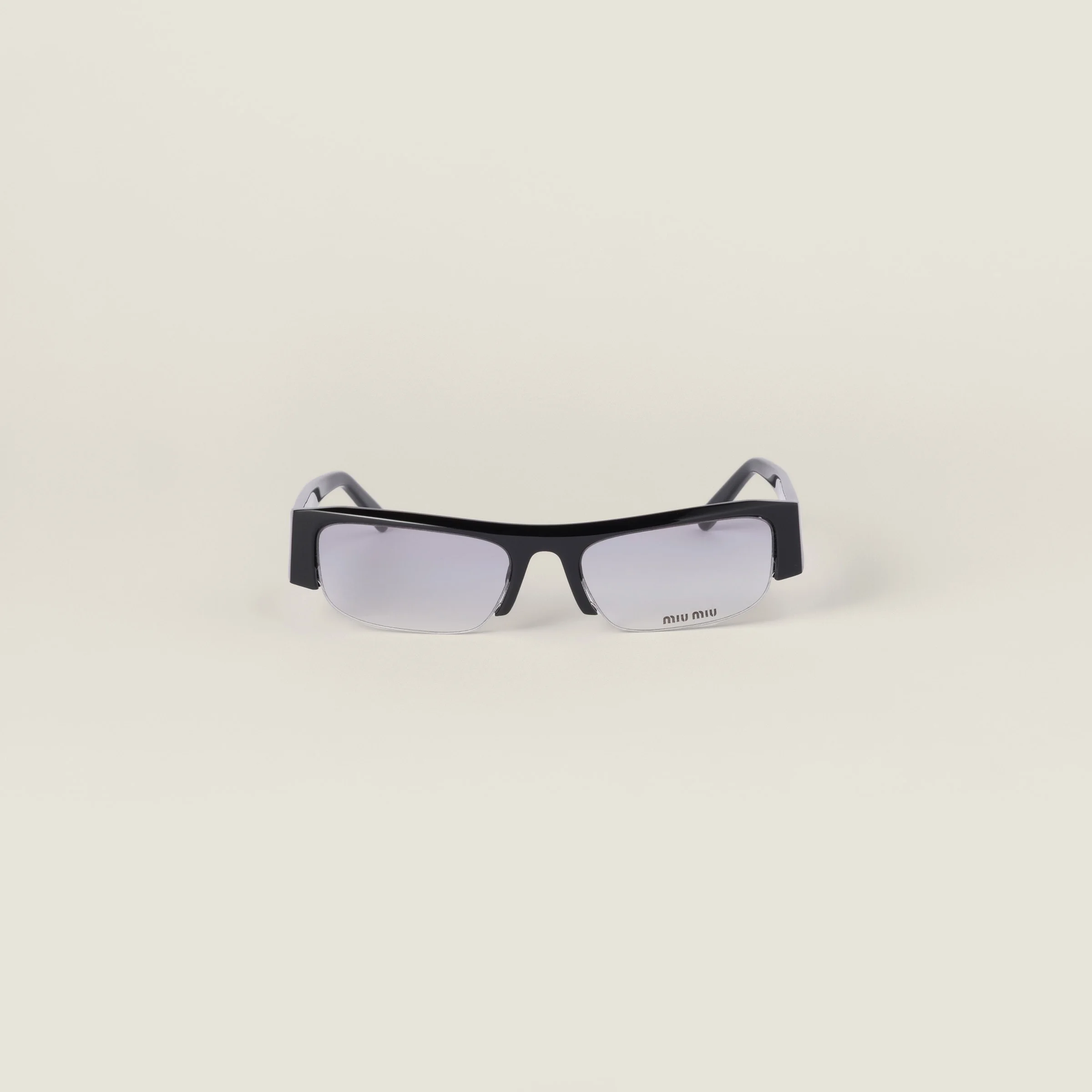 The eyewear from the FW25 Fashion Show, inspired by the early 2000s, combines the design of the narrow, rectangular frame with chunky temples. The lenses are decorated with the Miu Miu logo, a bold and glamorous touch that immediately makes you want to wear them. - Product code: SMUB07_E16K_FE04O_C_051 - Recycled bio-acetate frame front - Color: Black - Frame compatible with graduated lenses - 100% UVA / UVB protection - Standard Fit - Lens-nose-temple measurement: 51-17-140 mm - Article comes with dedicated packaging - Imported Materials Main material: Acetate