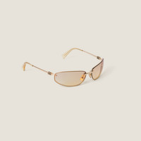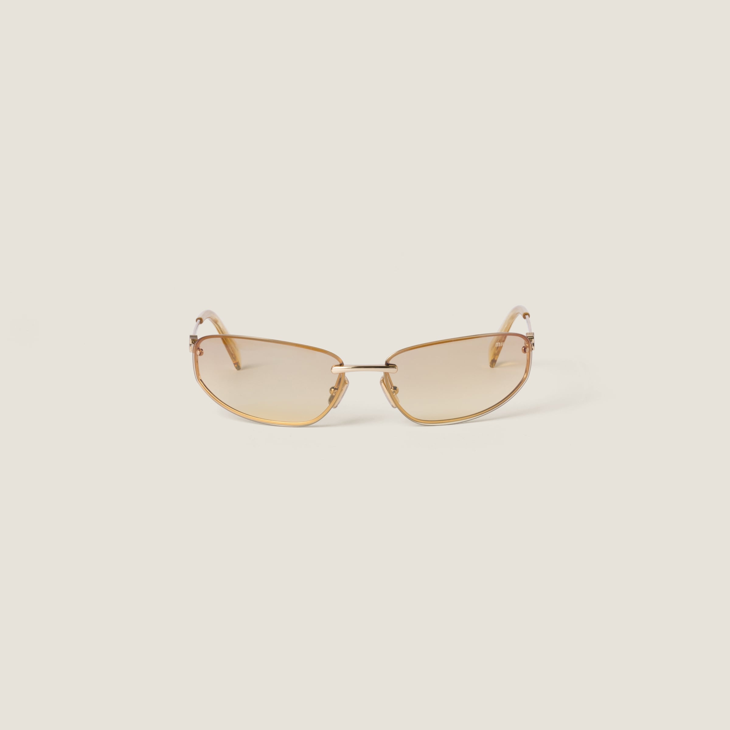 These sunglasses from the fashion show reinterpret classic sporty styles with a glamorous touch. The metal frame combines a curved design and playful mirrored lenses. The vertical Miu Miu logo decorates the ultra-thin temples. - Product code: SMUA50_M5AK_F07R1_C_068 - Metal frame front - Color: Steel Gray - Frame not compatible with graduated lenses - 100% UVA / UVB protection - Adjustable nose pads suitable for any fit - Lens-nose-temple measurement: 68-15-130 mm - Article comes with dedicated packaging - Other colors available - Imported