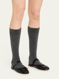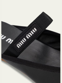 Miu Miu calf leather ballerina mules with bow accent 0.17 in / 5 mm flat heel Round toe Stretch Mary Jane strap upper with logo patch Slide style Slip on Leather outsole Lining: Unlined Made in Italy Online Inquiries: BGS21_X6VX1| Store Inquiries: #5009697