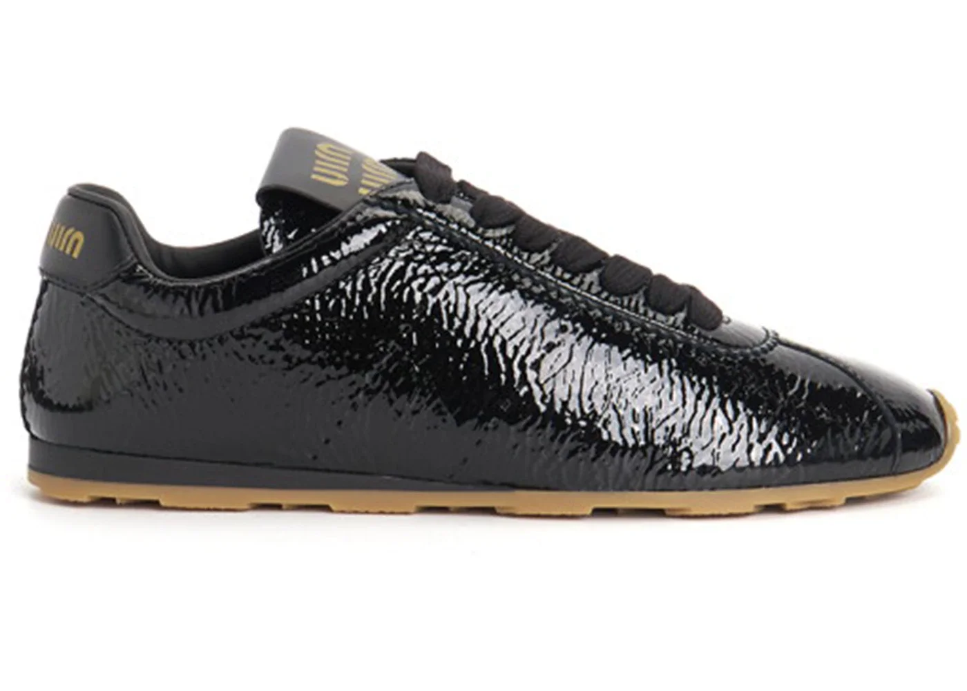 Miu Miu Shiny Leather Plume Sneakers Black Gum (Women's)