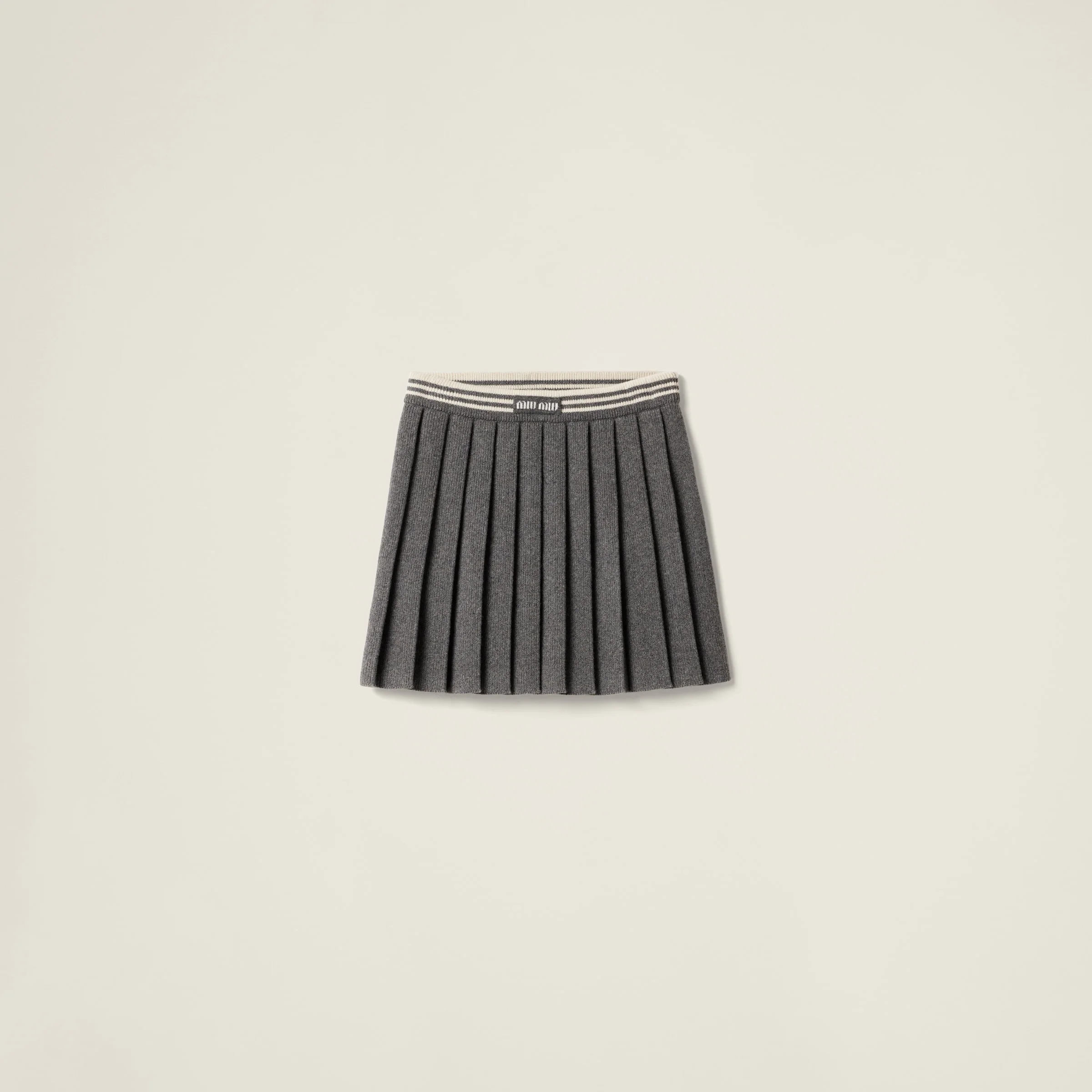 The pleated motif and preppy spirit of this skirt become iconic through the melange effect of the soft wool and regenerated cashmere yarn that makes the contemporary style more versatile. - Product code: MMG523_158X_F0480_S_OOO - Knitwear - Mini fit - Logo patch - Imported - The model is 178 cm tall and wears a size 38 Height 40cm Materials Main material: 10% Virgin Wool 50% Recycled Cashmere 40% Recycled Wool
