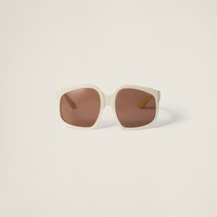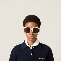 Retro inspirations and bold lines come together in the oversized design of the Miu Ombre sunglasses for Spring/Summer 2025. The style features a wide, square frame available in a vibrant color palette. The temples are decorated with the gold-tone Miu Miu logo. - Product code: SMUA07_E21D_FE90Q_C_059 - Acetate frame front - Color: Milky White - Frame not compatible with graduated lenses - 100% UVA / UVB protection - Standard fit - Lens-nose-temple measurements: 59-19-145 mm - Article comes with dedicated packaging - Imported Materials Main material: Acetate