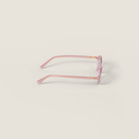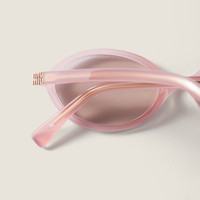 Acetate sunglasses with a sophisticated oval shape. The acetate frame features thin rims and ultra-flat lenses that emphasize extreme lightness. The vertical Miu Miu logo decorates the temples, adding a refined touch. - Product code: SMU04Z_E20I_FE60V_C_050 - Acetate frame front - Color: Pale Opaline Pink - Frame not compatible with graduated lenses - 100% UVA / UVB protection - Standard fit - Lens-nose-temple measurements: 50-18-140 mm - Article comes with dedicated packaging - Imported Materials Main material: Acetate