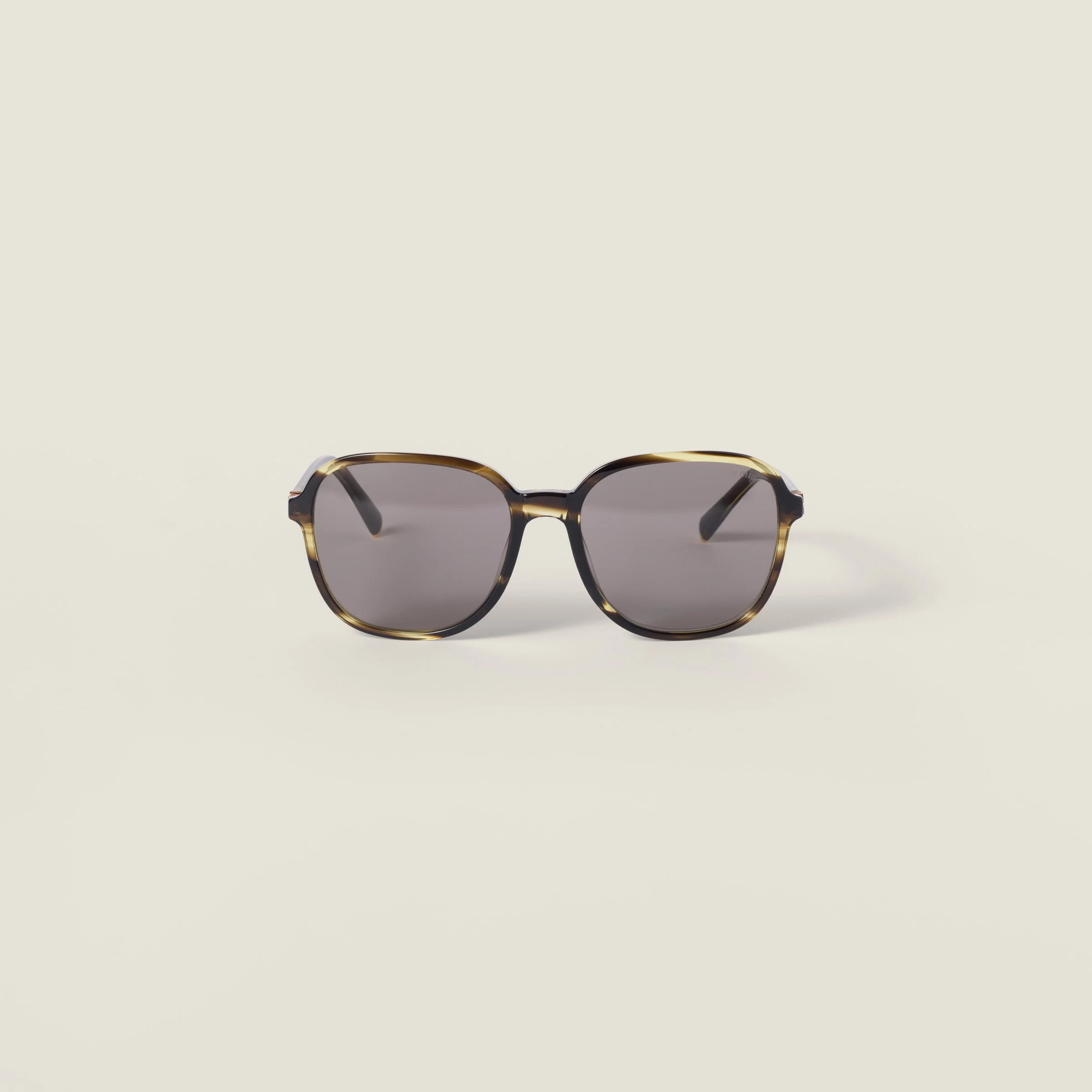 Miu Regard sunglasses are reinterpreted in a new oversized version with vintage allure. The acetate frame features a large, feminine square design with clean, classic lines. The temples are embellished with the refined touch of the vertical Miu Miu logo. - Product code: SMUB01_E25E_FE80Q_C_058 - Bio-acetate frame front - Color: Streaked Loden Green - Frame compatible with graduated lenses - 100% UVA / UVB protection - Standard Fit - Lens-nose-temple measurement: 58-18-140 mm - Article comes with dedicated packaging - Imported Materials Main material: Acetate