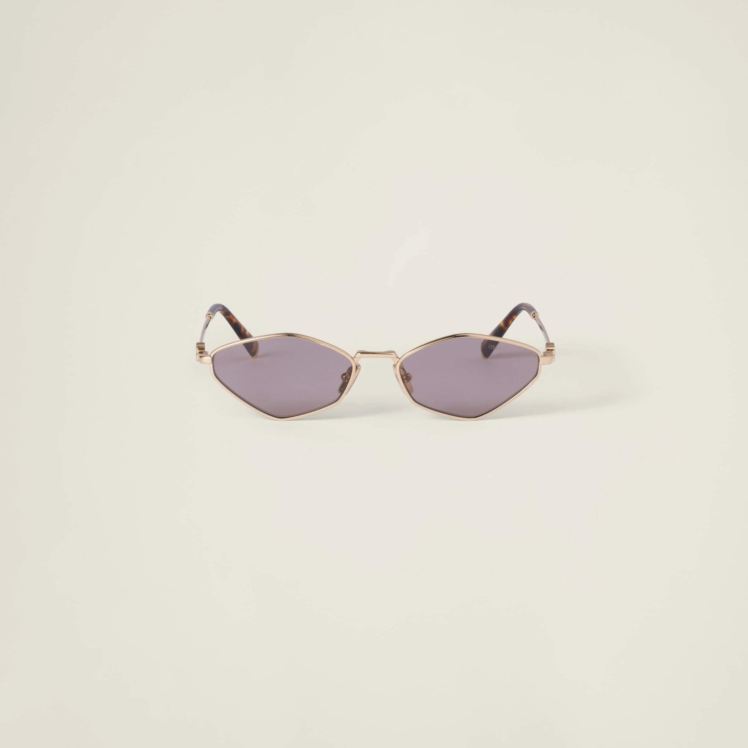 Metal sunglasses with a glamorous touch. The irregular front is outlined by refined thin rims and combined with sleek temples decorated with the iconic vertical Miu Miu logo. - Product code: SMU56Z_E5AK_FE20I_C_056 - Metal frame front - Color: Gold - Frame compatible with graduated lenses - 100% UVA / UVB protection - Adjustable nose pads suitable for any fit - Lens-nose-temple measurements: 56-17-140 mm - Article comes with dedicated packaging - Other colors available - Imported Materials Main material: Metal