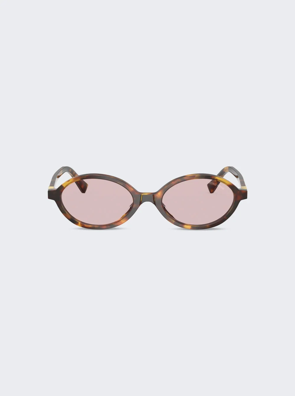 Details - Oval shape acetate sunglasses - Thin rims and ultra-flat lenses - Vertical Miu Miu logo on the temples - Havana brown frame, pink lenses - 100% UVA / UVB protection - Lens-nose-temple measurements: 50-18-140 mm - Material: Acetate; Nylon made from renewable resources Vendor Color Code: Brand Style: 0MU 04ZSF Designer/Brand: MIU MIU