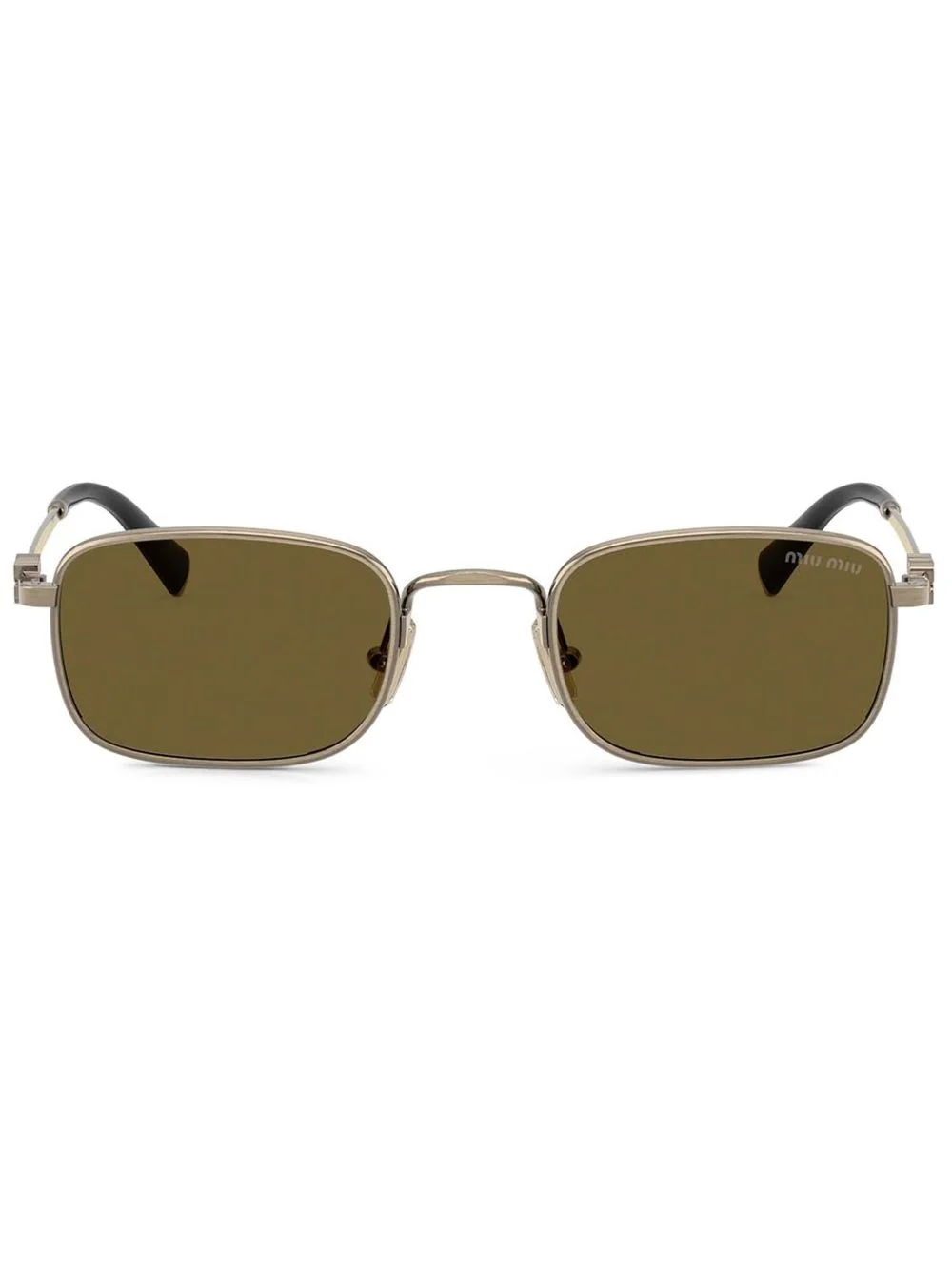 rectangle-frame sunglasses Highlights - Gold-tone - Metallic effect - Rectangle frame - Brown tinted lenses - Straight arms - Logo plaque at the arm - Curved tips - Nose pads - These glasses come with a protective case. Composition Metal 100%, Acetate 100% SIZE & FIT Measurement Lens Diameter 1.92 in(4.9 cm)