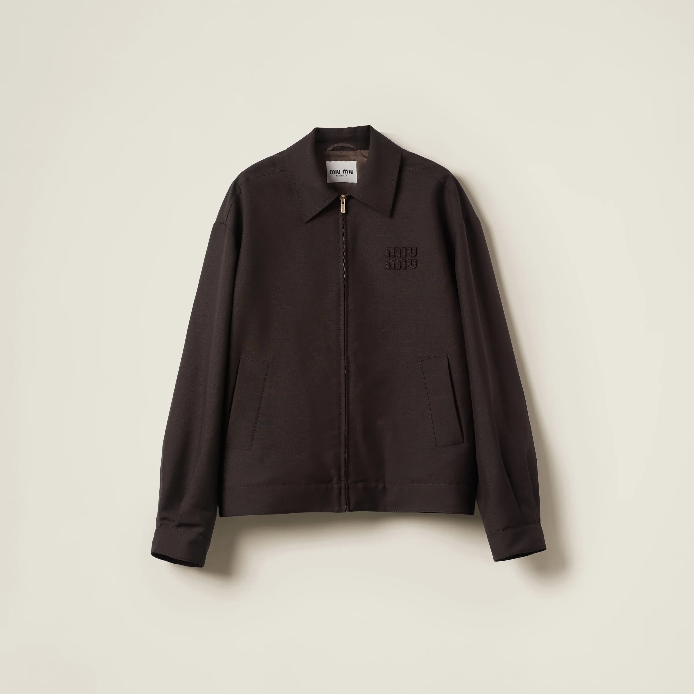 Sleek, versatile lines characterize this mohair blouson jacket. The embroidered logo completes the design with an iconic note. - Product code: ML1041_12I1_F0192_S_OOO - Shirt-style collar - Long sleeves with tab and button - Cuffs with buttons - Zipper closure - Welt pockets - Partially lined - Embroidered logo - Imported - The model is 176 cm tall and wears a size 38 Height 65cm