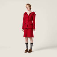 This sleek, elegant skirt expressing Miu Miu's dialog with ever-evolving femininity stands out for its clean line and pencil silhouette enhanced by fine mohair wool and the iconic tonal logo. - Product code: MG2558_17C8_F0011_S_OOO - Pencil silhouette - Unlined garment - Side zipper closure with hook - Lettering logo on the back - Inseam pockets - Imported - The model is 177 cm tall and wears a size 38 Height 55cm Materials Main material: 20% Mohair 80% Virgin Wool