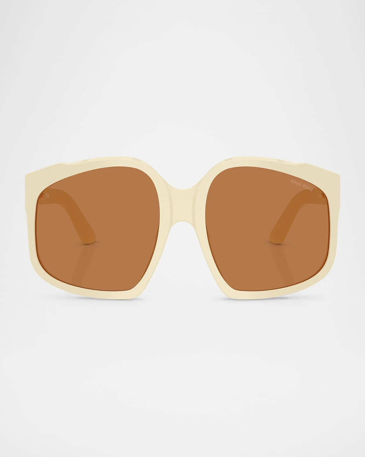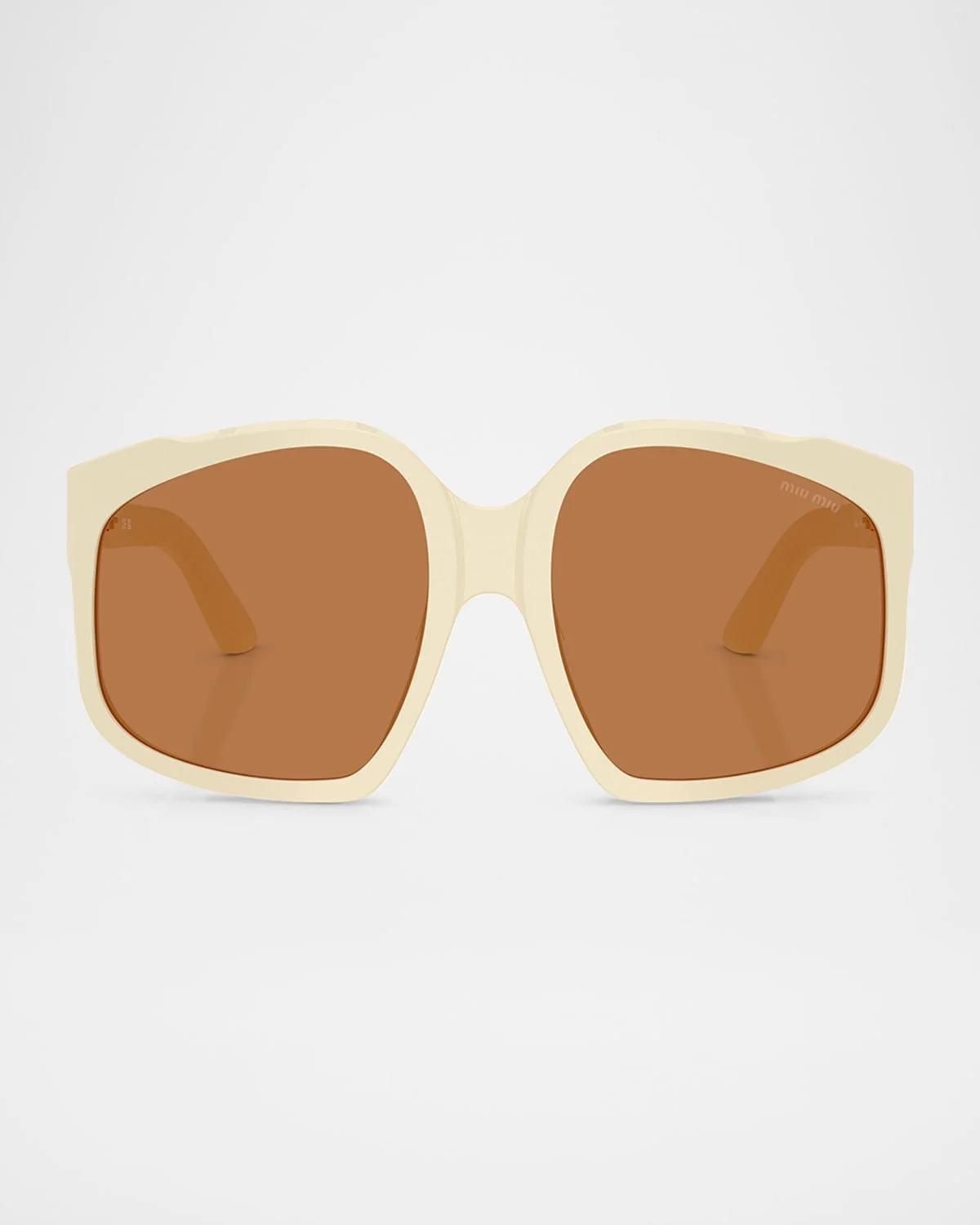 - Miu Miu square sunglasses feature an irregular shape that adds a unique touch to any look. The standard lenses ensure practicality for everyday wear, while the overall design exudes effortless style. - Eye/bridge/temple (in mm): 59-17-140 - Monochromatic lenses - Saddle nose bridge - Vertical logo on temples - Wide, tapered arms - 100% UVA/UVB protection - Acetate/plastic - Spot clean - Made in Italy - Proposition 65 warning for California residents