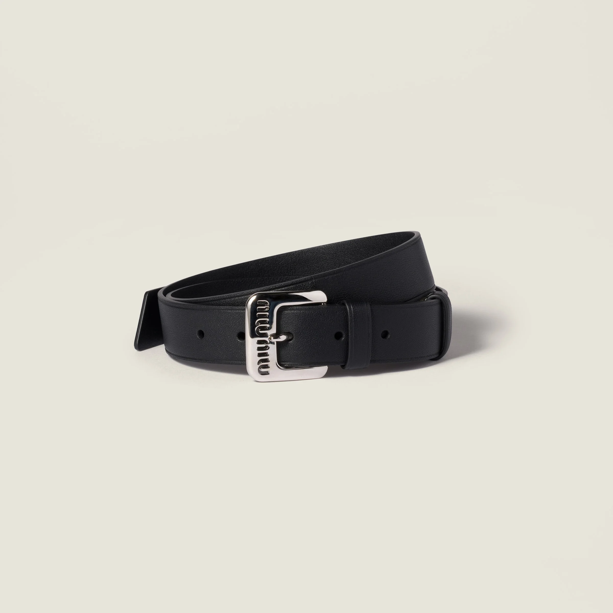 Elegant and minimalist in design, this nappa leather belt is characterized by the Miu Miu logo that decorates the metal buckle. - Product code: 5CC545_EFX_F0632 - Metal buckle with logo - Imported Height 3cm Materials Main material: Lambskin