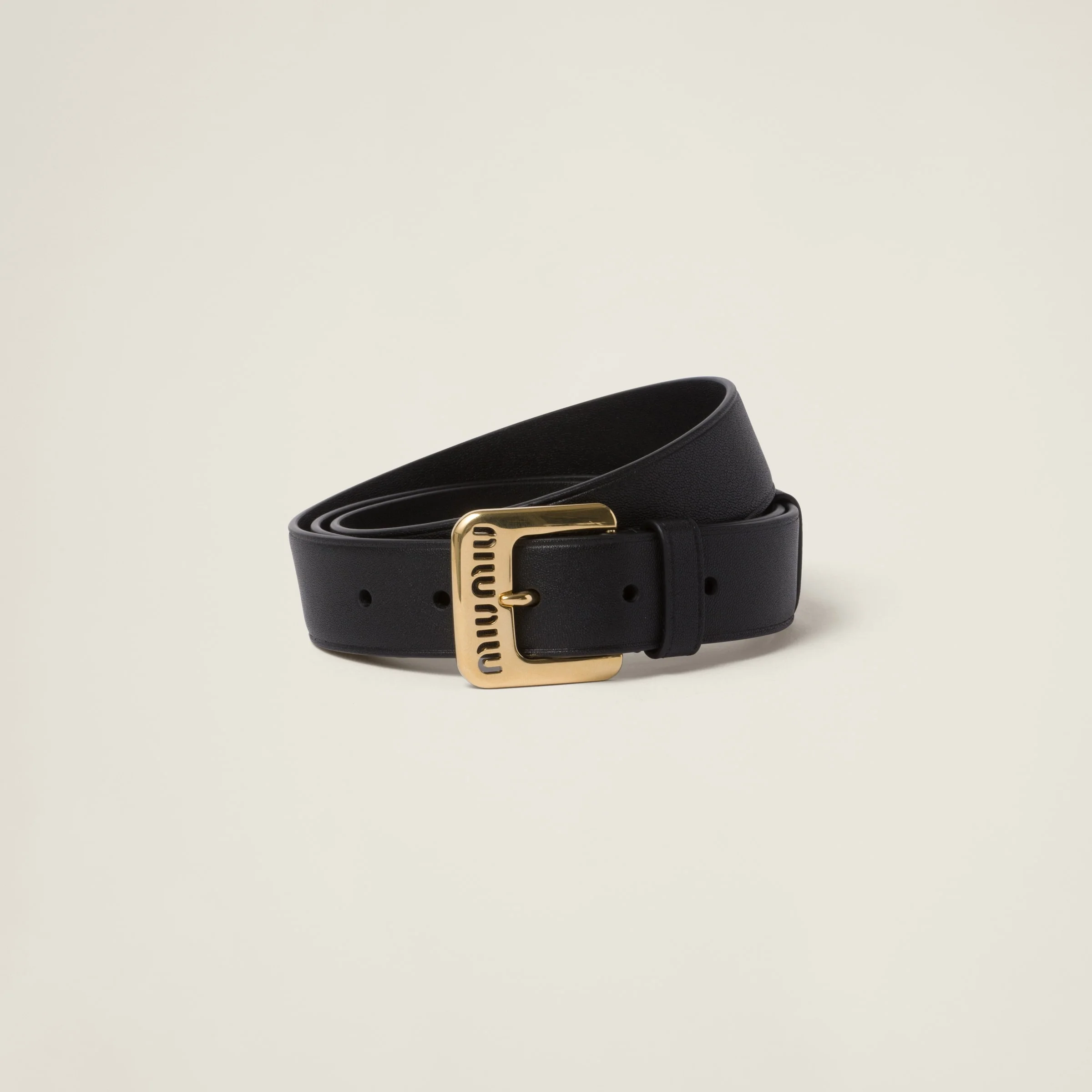 Elegant and minimalist in design, this nappa leather belt is characterized by the Miu Miu logo that decorates the metal buckle. - Product code: 5CC545_EFX_F0002 - Metal buckle with logo - Imported Height 3cm Materials Main material: Lambskin
