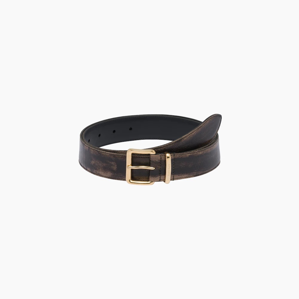 Cod. 5CC536_2F6P_F0V6L This nappa leather belt has a worn effect to add a new twist to the accessory. - Metal buckle - Laser-engraved logo on belt loop Height 3.5 cm MATERIALS Leather