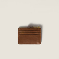 The fine touch of nappa leather and the iconic Miu Miu logo enrich the simple lines of this card holder. The zipper pocket and key ring detail complete the design, combining functionality and character. - Product code: 5MC093_AEFX_F0316 - Three card slots - Zipper closure - With removable metal key ring - Moire and nappa leather lining - Embossed lettering logo - Imported Height 8cm Width 11cm Materials Main material: Lambskin