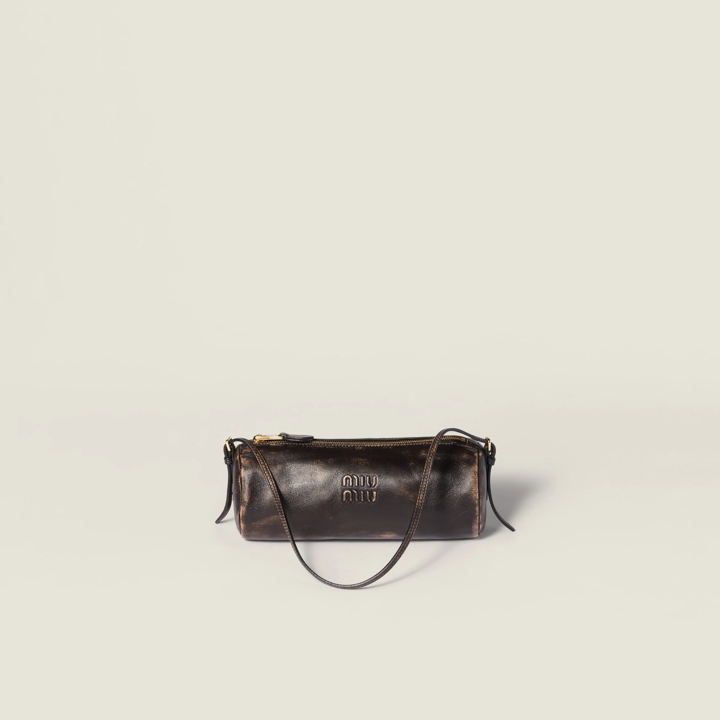 The compact design of this pouch is combined with the aged effect of the nappa leather created with a unique process blending vintage inspirations with elegant functionality, perfect for different looks. - Product code: 5NE851_AF6P_F0201 - Zipper closure - Embossed lettering logo - Detachable, adjustable leather shoulder strap - Cotton satin lining - Imported Height 9cm Width 22cm Length 9cm Materials Main material: Lambskin