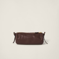 A compact, functional design characterizes this soft nappa leather pouch. The shoulder strap adds a practical detail while the lettering logo completes the design with an iconic note. - Product code: 5NE851_AEFX_F0NBL - Zipper closure - Embossed lettering logo - Detachable, adjustable leather shoulder strap - Waterproof linen interior - Imported Height 9cm Width 22cm Length 9cm
