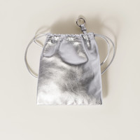 This practical pouch made of soft nappa leather is characterized by the drawstring closure, seasonal colors, and the metal lettering logo that completes the design with an iconic note. - Product code: 5NG010_ACSW_F0118 - Leather drawstring closure - Metal lettering logo - Re-Nylon lining - Imported Height 21cm Width 18cm Materials Main material: Lambskin