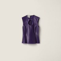 The fine nappa leather of this top stands out for its natural sheen, the effect of a refined hand-applied finish that makes the leather soft. The refined femininity of the garment is expressed in the gold-tone metal buckle. - Product code: MPT299_165Z_F0030_S_OOO - Unlined garment - Regular fit - Gold-tone metal buckle at the neck - Back zipper closure - Imported - The model is 176 cm tall and wears a size 38 Materials Main material: Lambskin
