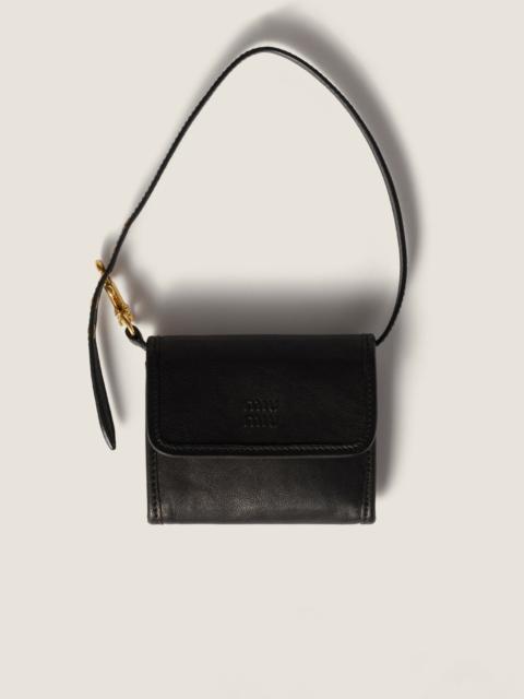 Nappa leather wallet with shoulder strap