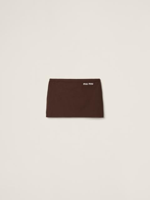The simple character of this skirt meets a sporty touch thanks to the drawstring waist. The embroidered Miu Miu logo signs this stylish version. - Product code: MMG505_14SJ_F0324_S_OOO - Interlock knit - Pencil silhouette - Embroidered logo - Imported - The model is 178 cm tall and wears a size 38 Height 35cm Materials Main material: 100% Recycled Polyamide