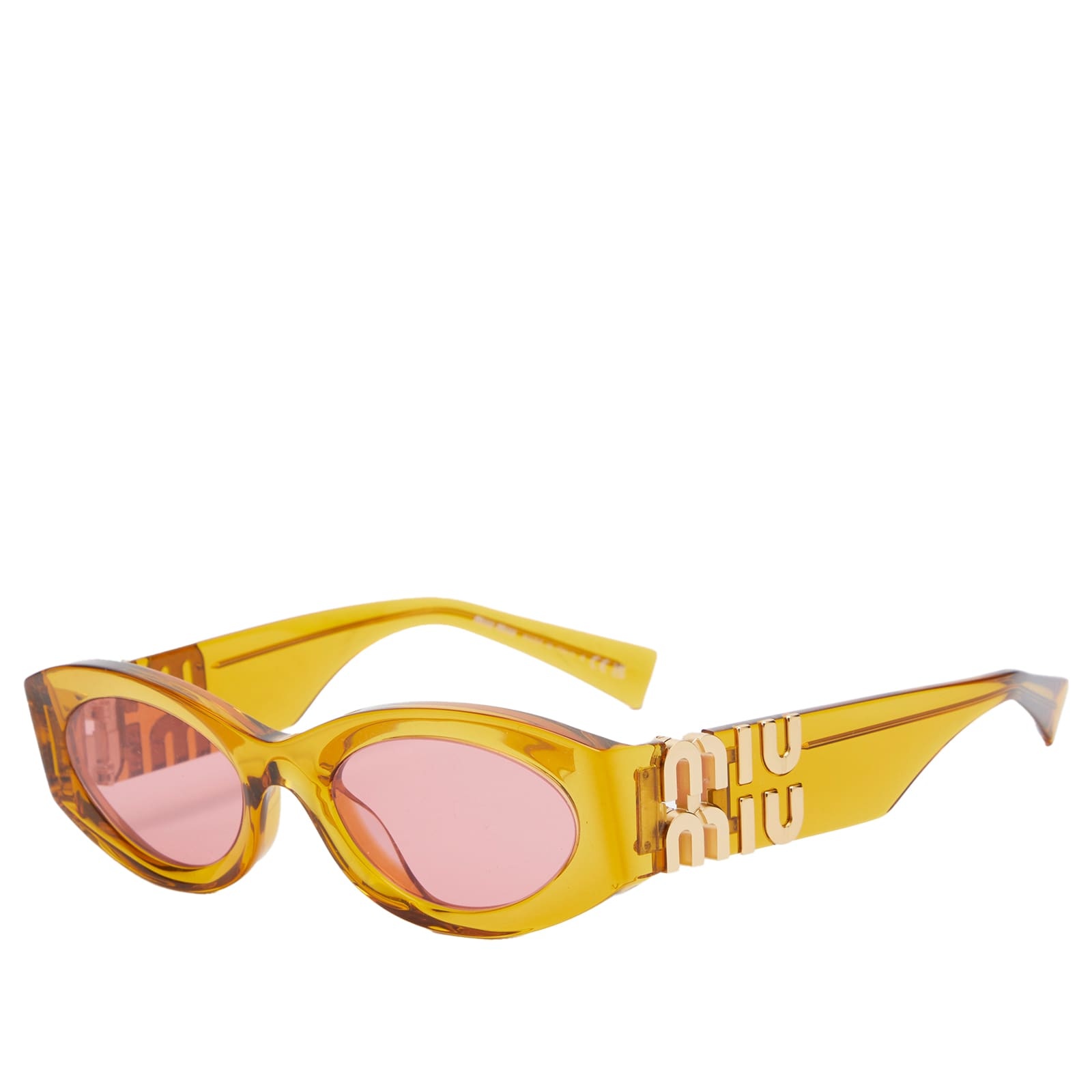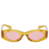 Italian powerhouse Miu Miu Eyewear have all your summer needs covered with these 11WS Sunglasses. Transparent frames are accentuated with a burst of fruity orange, housing the brand’s iconic logo on the arms. Ready to breathe joy into your pool-side ensembles, rosy pink lenses complement to finish. - Acetate Frame - Tinted Lenses - Appliqué Branding