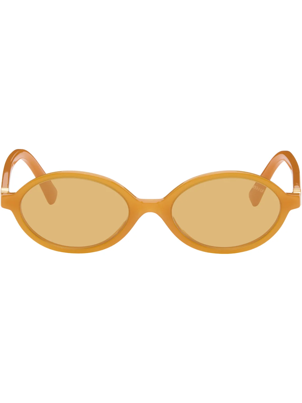 Oval acetate-frame sunglasses. · Mirrored orange lenses · Etched logo at lens · Integrated nose pads · Logo hardware at hinges · Hinged velour case included · Size: 50.18 140 Supplier color: Turmenic opal/Light orange silver Acetate. Made in Italy 261209F005061