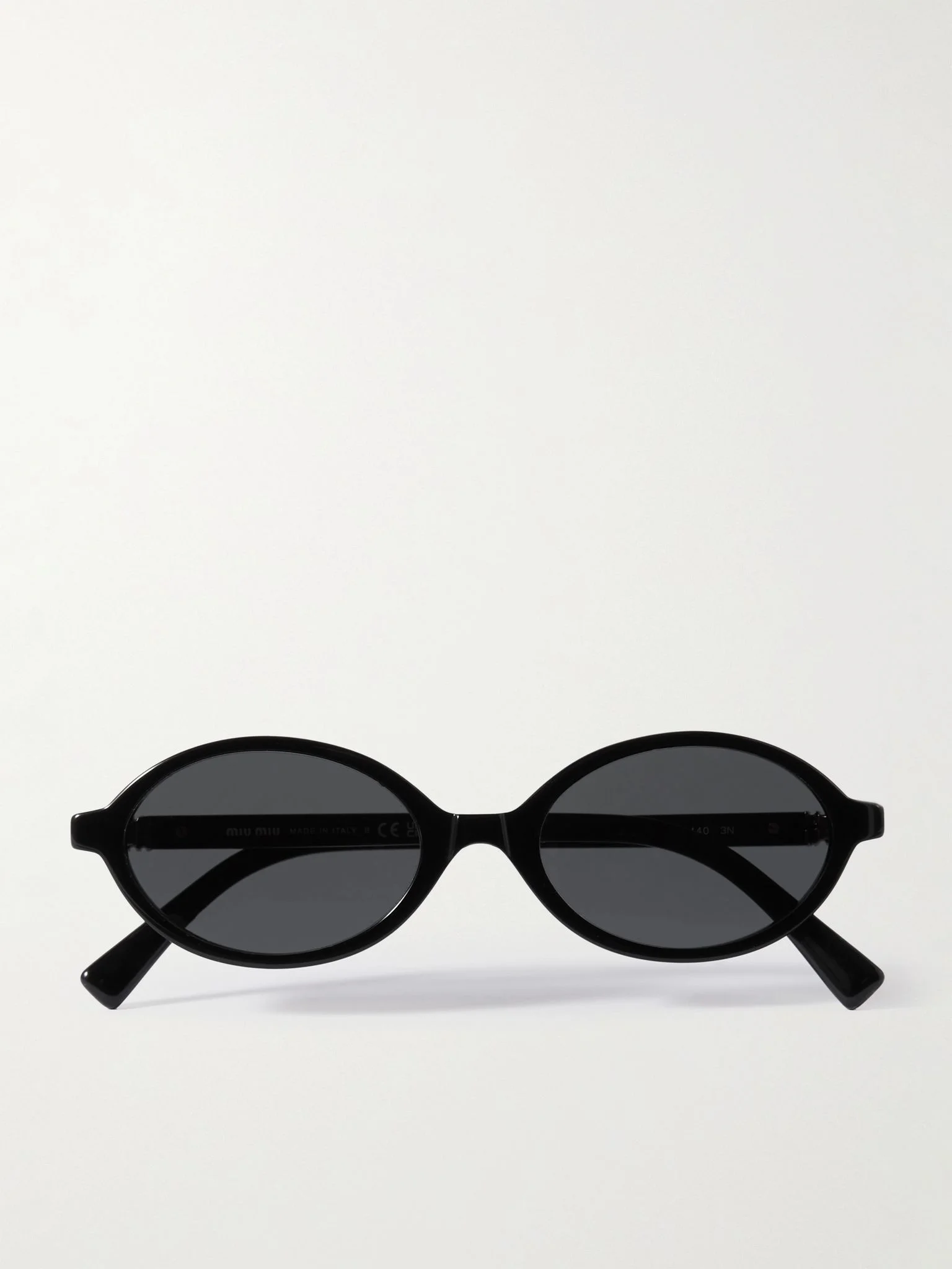 Miu Miu's sunglasses have slender, oval frames reminiscent of styles from the '90s and early aughts. They're made from lightweight acetate and decorated with gold-tone hardware at the slim arms that spell out the label's moniker. Stow yours in the accompanying case between wears. Details & Care - Black acetate - Come with a case - 100% UV protection