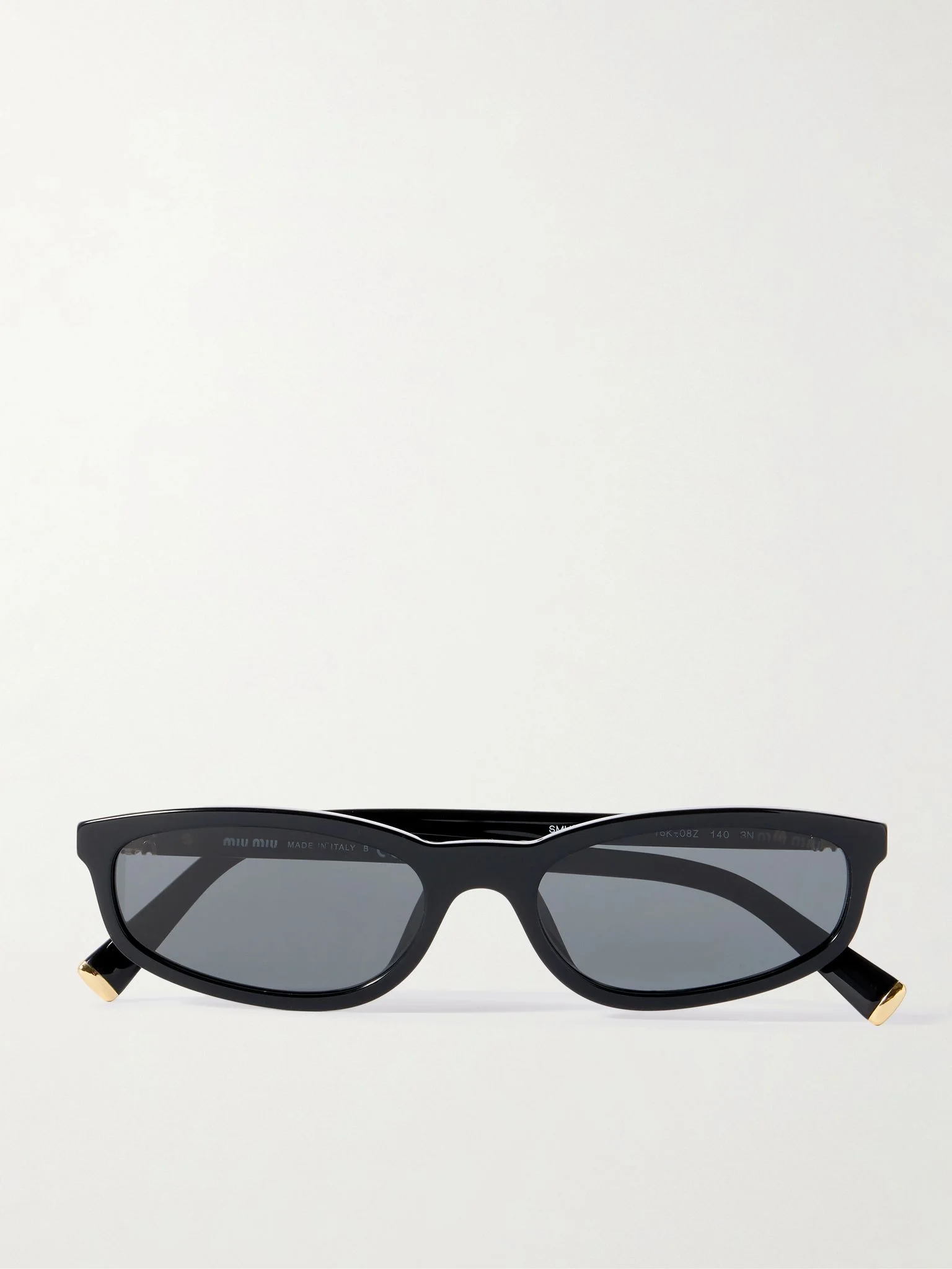 Miu Miu's sunglasses are minimally designed and effortlessly cool, so they're bound to be your next go-to pair. Made from glossy black acetate, they have oval frames channeling '90s styles and feature gold-tone accents, including the logo at the temples. Details & Care - Black acetate - Come with a case - 100% UV protection