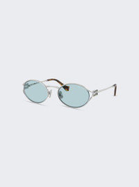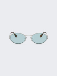 Metal Oval Sunglasses Silver And Celeste Blue Lenses