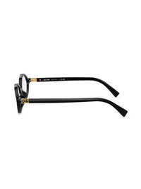 oval optical glasses Showcasing Miu Miu's dynamic spirit, these optical glasses are characterised by ultra-flat lenses that highlight the extreme lightness of the slim oval frame. They're finished with a gold-tone metal logo plaque at the temples. Highlights - Black - Acetate - Logo plaque at the arm - Oval frame - Clear lenses - Straight arms - Curved tips - All glasses from farfetch are sold as non-prescription frames. - These glasses come with a protective case. Composition Acetate 100%