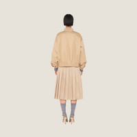 The Miu Miu Spring Summer 2022 collection is an exercise in references and a study of reality, using what exists to create new irreverent silhouettes through novel proportions and precious details. Classic tailoring is subverted and classic women's garments take on new meanings. - Product code: ML843_1UPX_F0065 - Shirt collar - Sleeve with cuff and button - Cuff with buttons - Zipper closure - Welt pockets - Lined garment - Embroidered logo - Elasticized hem - Imported Height 65cm Materials Main material: 100% Cotton