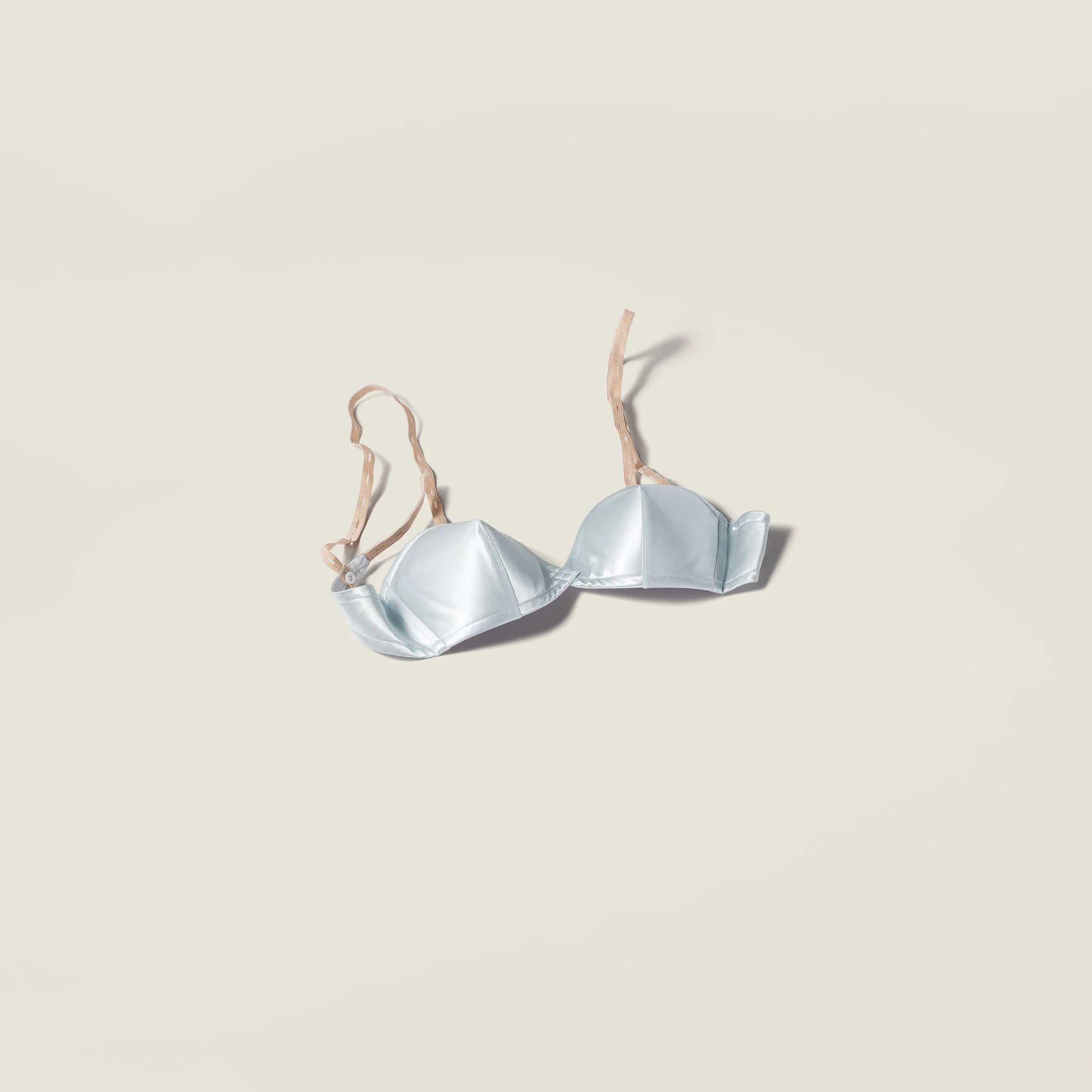 The silhouette of this satin bra embodies decisive, minimalist sensuality that enhances looks with layered combinations in a subtle balance between irony and elegant femininity. - Product code: RG9504_18BE_F0M10_S_OOO - Bra - Lined garment - Elastic closure with buttons on the back - Logo patch - Imported - The model is 177 cm tall and wears a size 38 Materials Main material: 59% Cotton 41% Viscose