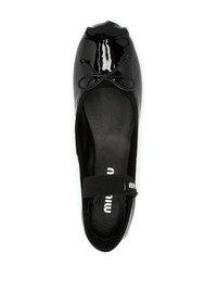 logo-band ballerina shoes A brand signature, these ballerina shoes speak to Miu Miu's romantic approach to design. They are made from black patent leather and decorated with a dainty bow on the toe. Highlights - Black - Calf leather - Patent finish - Bow detailing - Round toe - Elasticated band - Branded insole - Flat sole Composition Lining: Calf Leather 100%, Fabric 100% Outer: Calf Leather 100%, Fabric 100% Sole: Calf Leather 100% SIZE & FIT Measurement HEEL 0.78 in(2 cm) Sole height 0.39 in(1 cm)